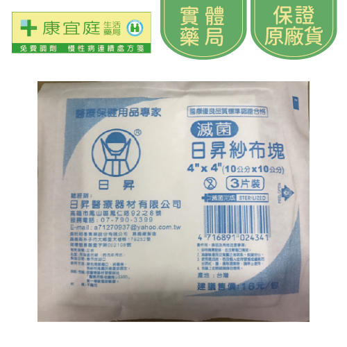 醫療器材許可證所載品名:“日昇”紗布塊(滅菌)