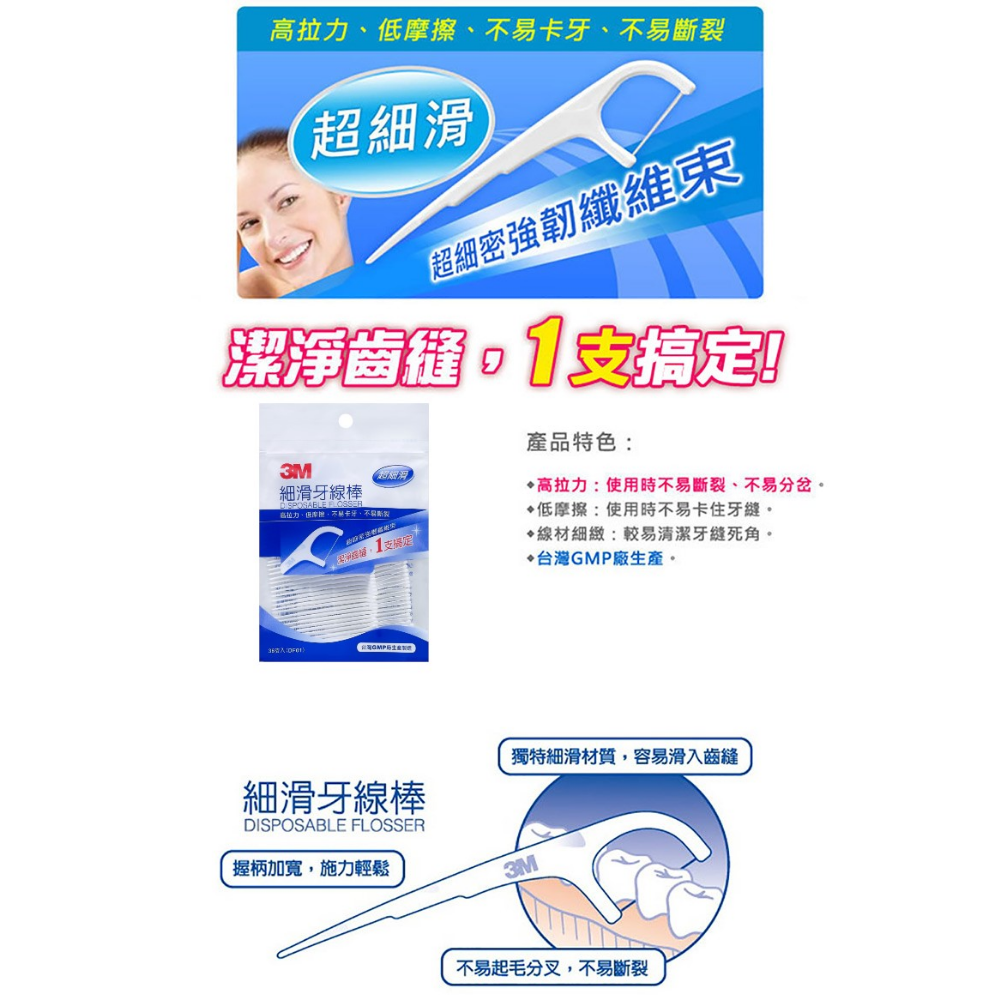 ◆品 名:3M細滑牙線棒36支