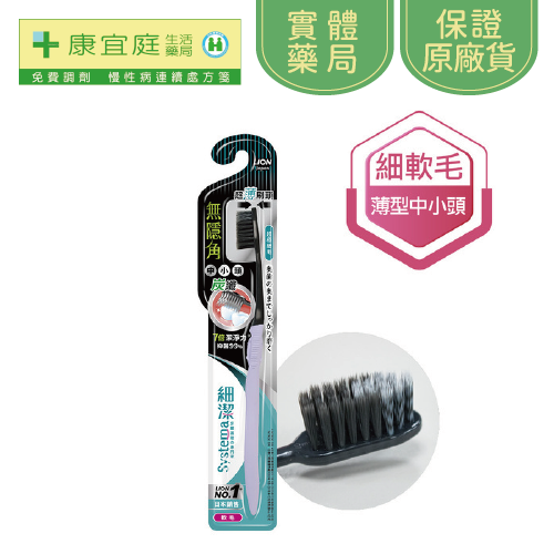 【獅王】細潔無隱角炭纖牙刷-中小頭1入(顏色隨機出貨)《康宜庭藥局》《保證原廠貨》
