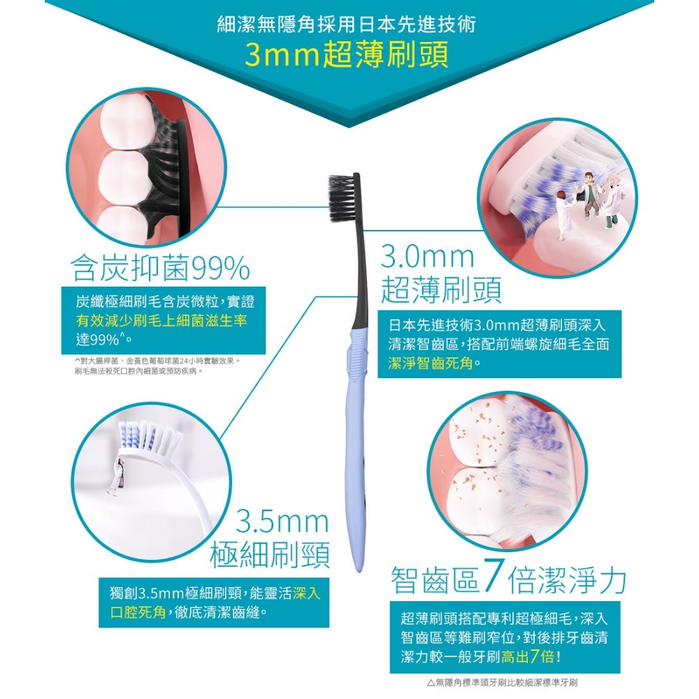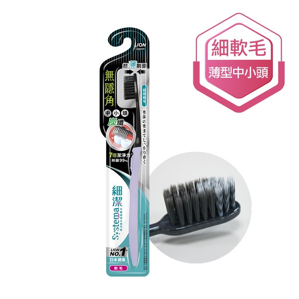 ◆品 名:獅王細潔無隱角炭纖牙刷-中小頭1入(顏色隨機出貨)
