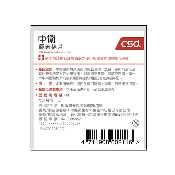 ◆商品名稱:中衛優碘棉片4P/包