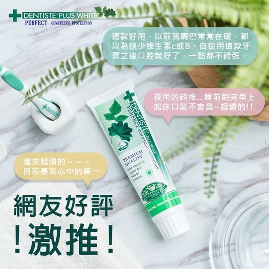 • 14種天然植物精華:洋甘菊、桉樹精油、綠薄荷精油、丁香精油、甘草、肉桂皮、兒茶、沒藥、茴香、洋茴芹、秘魯梅坦尼、紫錐花、鼠尾草、薄荷腦。